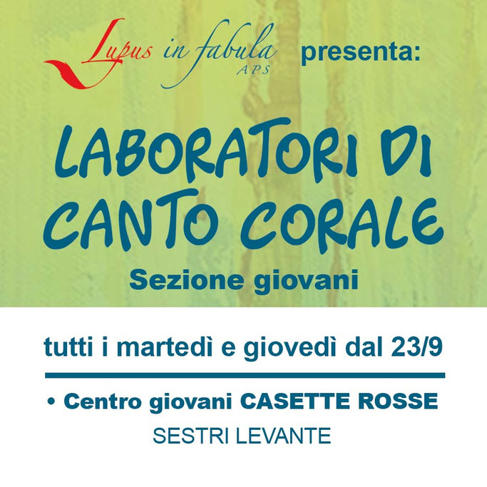 Piccolo coro Tra le nuvole (junior): Martedì ore 17 sede Lupus in fabula via Aurelia 143F, Sestri Levante